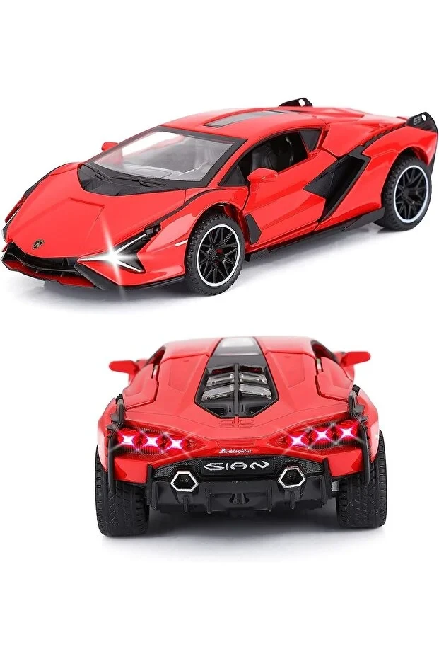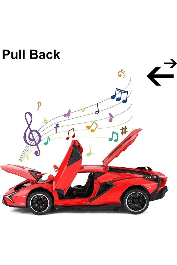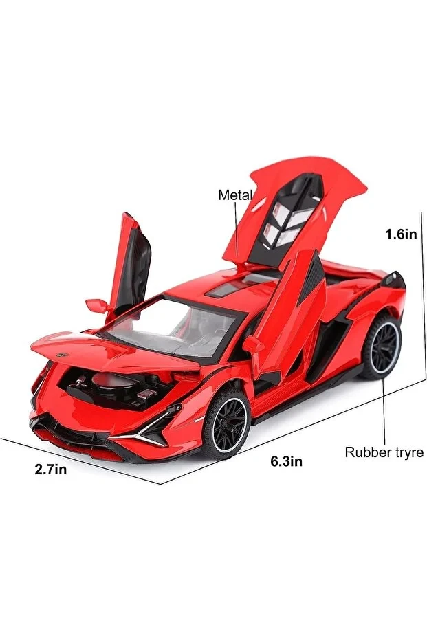 Bring home the thrill of a luxury supercar with this stunning 1:24 scale diecast sports car model.; Designed with premium detailing and realistic features, this model car includes opening scissor doors, LED headlights, and pull-back action for exciting play.; Crafted with durable metal body and high-quality ABS plastic parts, this car is built for both play and display.; The smooth pull-back mechanism allows the car to move forward quickly without remote control or complicated setup.; The detailed interior, sporty wheels, and aerodynamic body design make it a perfect collectible for car lovers.; Whether for kids who love racing toys or adults who enjoy model car collections, this supercar toy delivers both style and performance.; Ideal for birthdays, holidays, or special occasions