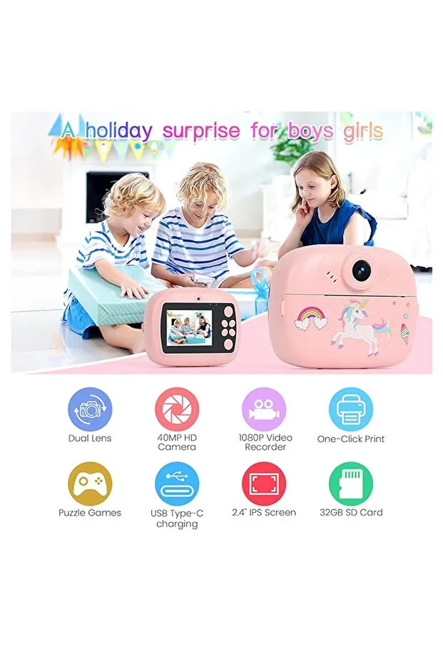 Equipped with a rechargeable battery, 32GB memory card, and fun accessories, this children’s digital instant camera encourages creativity, imagination, and storytelling. Ideal for birthdays, school activities, travel, and gifts, it helps develop creativity, hand-eye coordination, and confidence in kids.